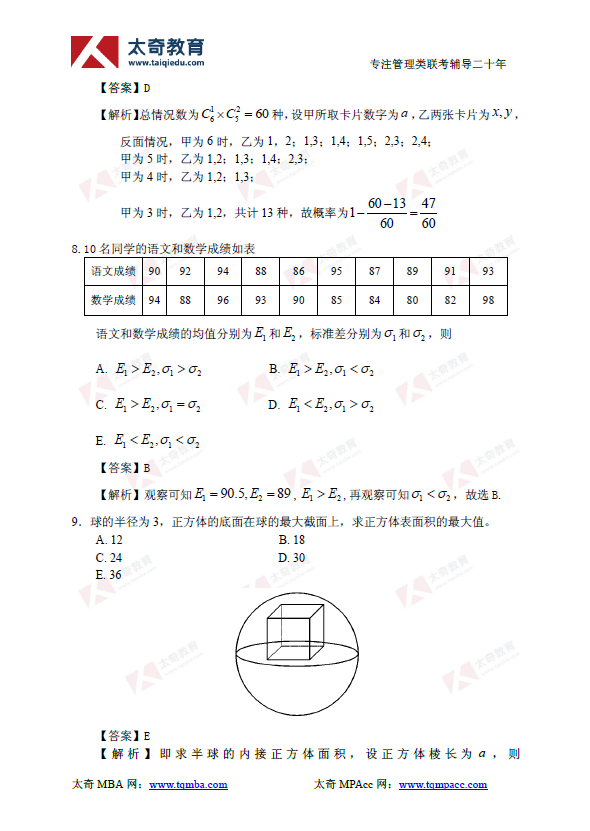 2019年MBA/MPAcc管理類聯(lián)考數(shù)學(xué)真題及答案(3)