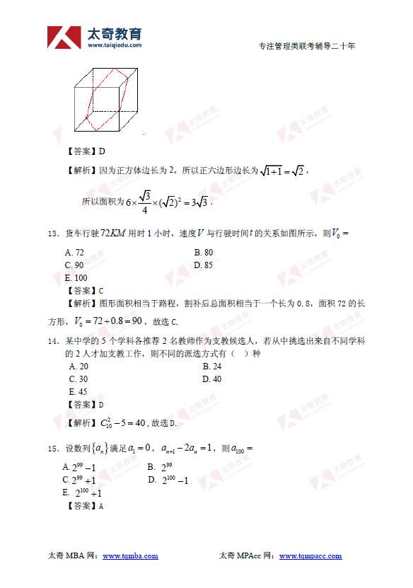 2019年MBA/MPAcc管理類聯(lián)考數(shù)學(xué)真題及答案(5)