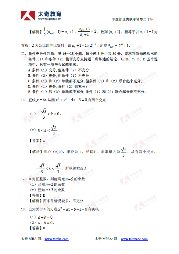 2018年MBA/MPAcc管理類聯(lián)考答案(官方版)