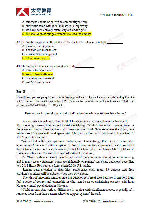 2019年管理類聯(lián)考MBA英語二真題及參考答案(8)