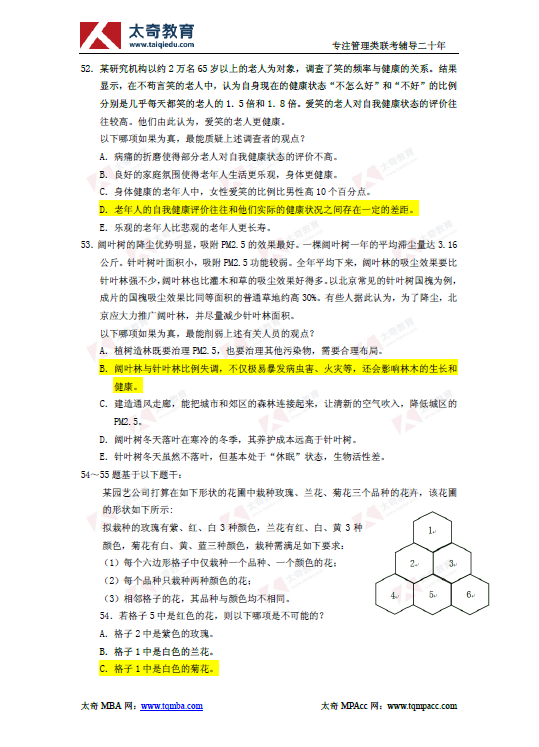 2019年管理類聯考綜合能力邏輯真題及參考答案(10)